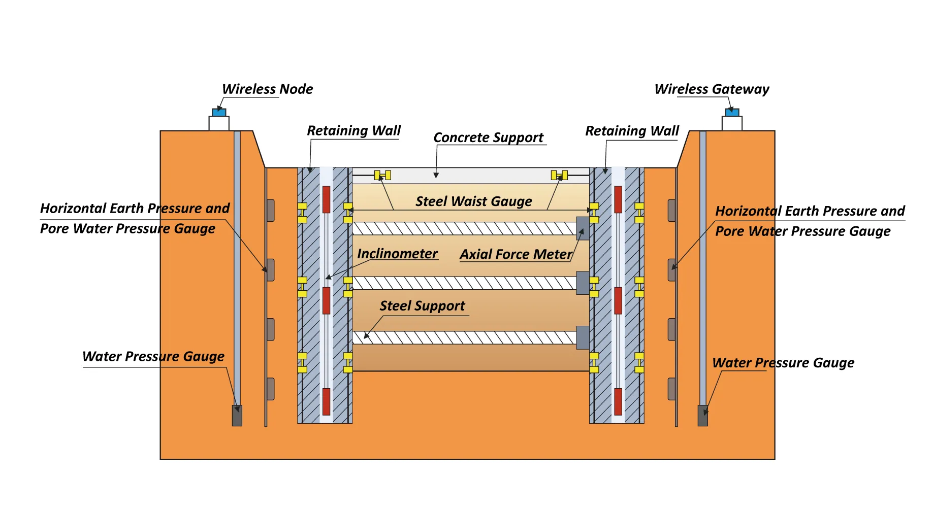 The online foundation pit monitoring system, which integrates new technologies such as cloud computing and big data, can operate without being affected by adverse weather conditions. It provides uninterrupted data, allows real - time access, and eliminates human - induced errors. It truly ensures stable and reliable data. It enables timely understanding of the foundation pit's operational status, issues early warnings for potential disasters, and triggers emergency alarms for unexpected events, thus reducing significant losses of lives and property and negative social impacts caused by foundation pit accidents.